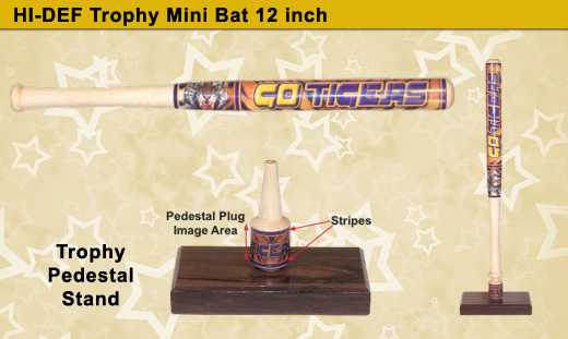 B12-IT Mini Bat 12 inch Imprinted with Trophy Pedestal Stand