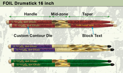 Maximum image size: Handle Zone - 5" W x 0.625" H. Taper Zone - 4" W x 0.625" HYou may choose the foil color for the imprint area.