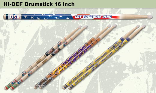 These professional grade drumsticks are made from premium quality hardwood and can be printed with full-color imaging. Even the smallest details can be read.