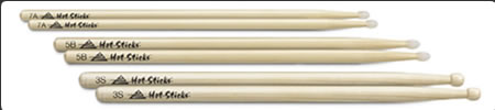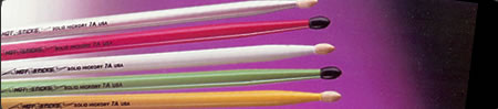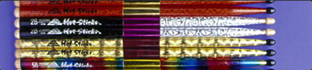 Back in the late 1970’s, Hot Sticks was the first modern drumstick manufacturer to develop a consistent method of applying durable, hi-gloss, automotive-quality finishes to drumsticks. Over the years Hot Sticks has continued to refine and perfect this exclusive process and today we offer nearly a dozen color choices— White, Black, Red, Blue, Pink, Yellow, Green, Purple, Silver and Gold— in six popular models with our classic black nylon tips.
